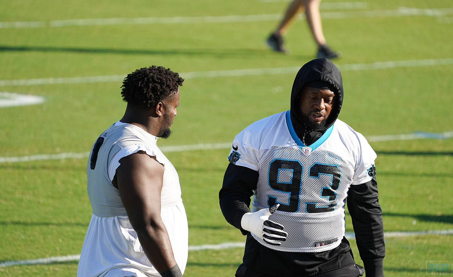 - Gerald McCoy entered practice for the first time, wearing a hoodie under his newly acquired #93 jersey, with the man who used to wear his number – as he and Kyle Love began warming up against each other, Cam Newton jogged past. A symbolic passing of the torch between the biggest story of last week in Carolina and what will likely be on the lips of Panthers fans for the next month.