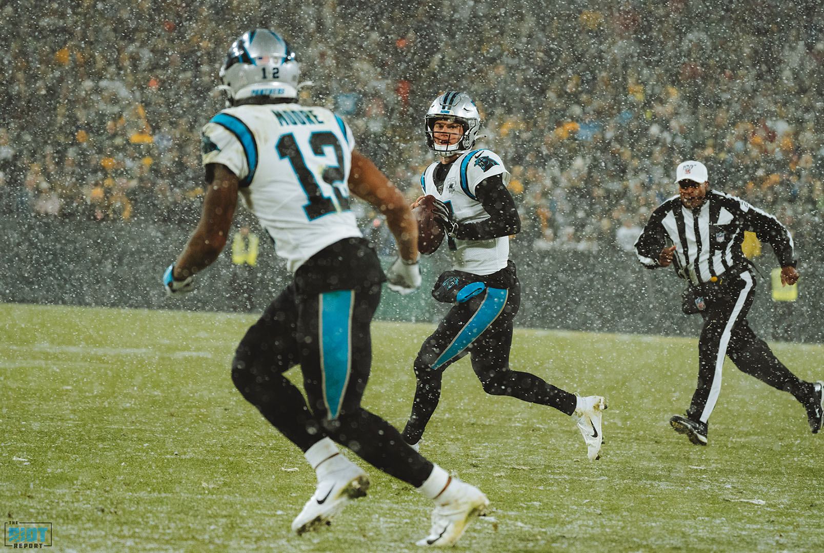 With the Panthers sitting at the Green Bay 25-yard line and Moore lined up across from corner Kevin King, Moore ran to the Packers’ 10-yard line and with King still backpedaling and inside of Moore, the wideout turned back towards the sticks towards the sidelines, away from King – just as Allen threw the ball to the spot where he knew Moore would end up.