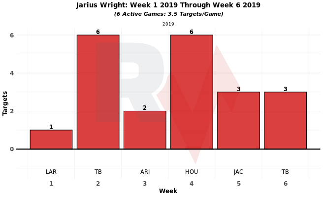 Wright is now under this line of 19.5 yards in four of six games, averaging 23 along the way. He gets no gifts in the matchup departmentĀ this week. Running 80% of his routes out of the slot, Wright will face off against K’Waun Williams, who is PFF’s fifth-highest graded CB at 82.7, a few points better than even Stephon Gilmore (79.4), who is generally considered the best corner in the league.