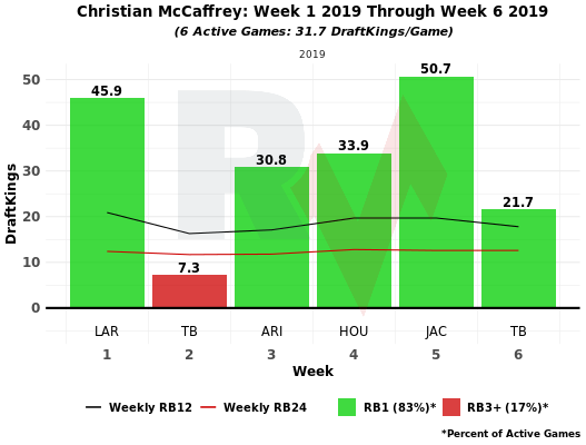 They’ve faced some good receiving backs, too, Joe Mixon and James Conner among them, but no one like McCaffrey, whose combination of opportunity and efficiency is unmatched. His recent “down” game, combined with the tough matchup, could put some people off of McCaffrey this week. That works just fine for us, as it gives us the rare chance to flex some ownership leverage over the field with fantasy football’s best player.