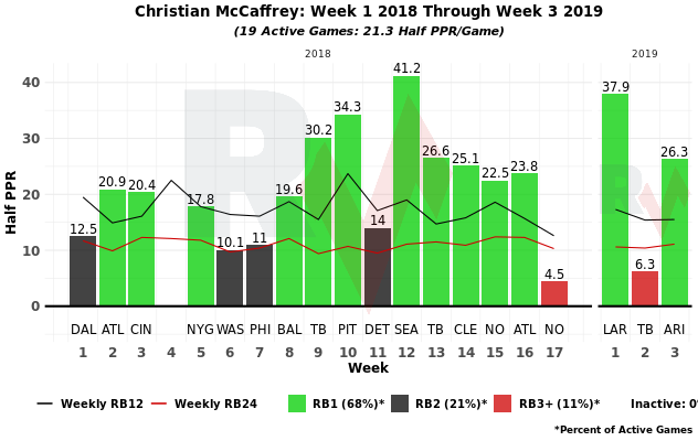 Matchups for McCaffrey have become immaterial, however — his elite usage and game-breaking ability him a good bet to exceed 20 points on any given week.