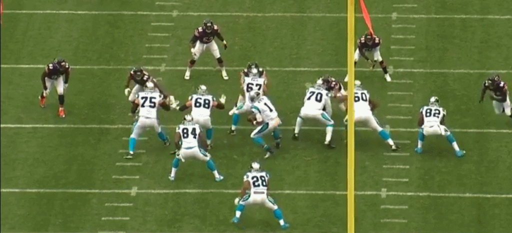 This was a consistent theme. The Panthers ran a play-action pass against this look:
