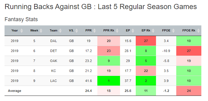 The Packers have given up 266.4 DK points to opposing RBs this year, the fourth-most in the league. Fellow feature backs Josh Jacobs and Melvin Gordon have both posted elite finishes against this defense over the last few games.