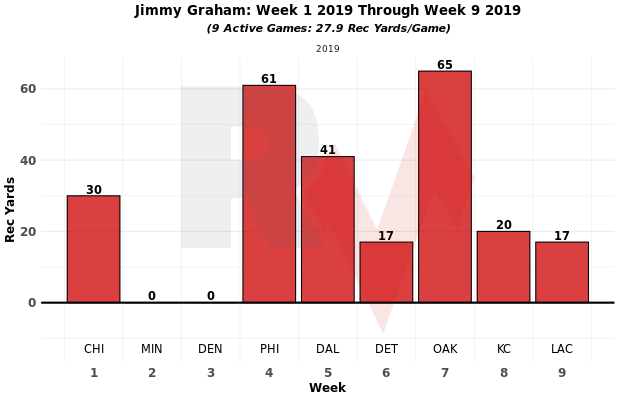 Graham has gone under this mark in three of his last four games. Last week he had just six total air yards on his four targets — that’s hard to do.