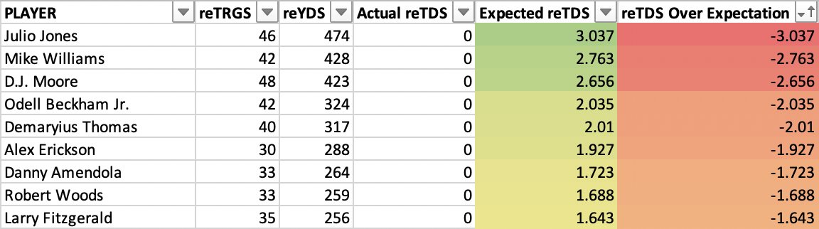 Only Julio Jones and Mike Williams are having worse luck in that department.