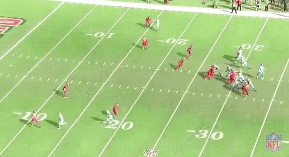 Nevertheless, this is not an easy route to run, and Samuel executes it beautifully. Unfortunately, Newton’s shoulder injury really limited his downfield accuracy in 2018, so it’s clear he wasn’t comfortable when throwing this pass.